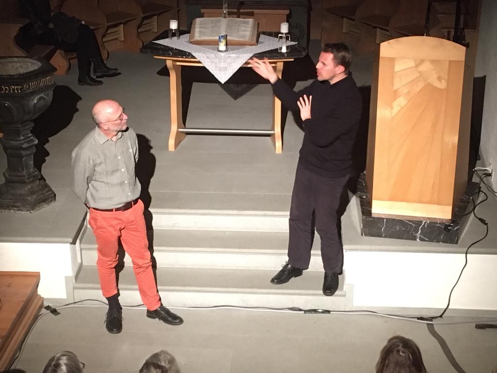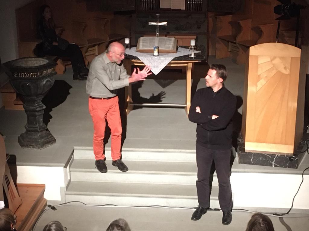 Philipp Kamm, Markus Meier und Jost Kirchgraber lassen den Orgelstreit in einer szenisch-musikalischen Präsentation wieder auflodern. Zwischen den Akten musiziert Steffi Rutz an der Hausorgel.
